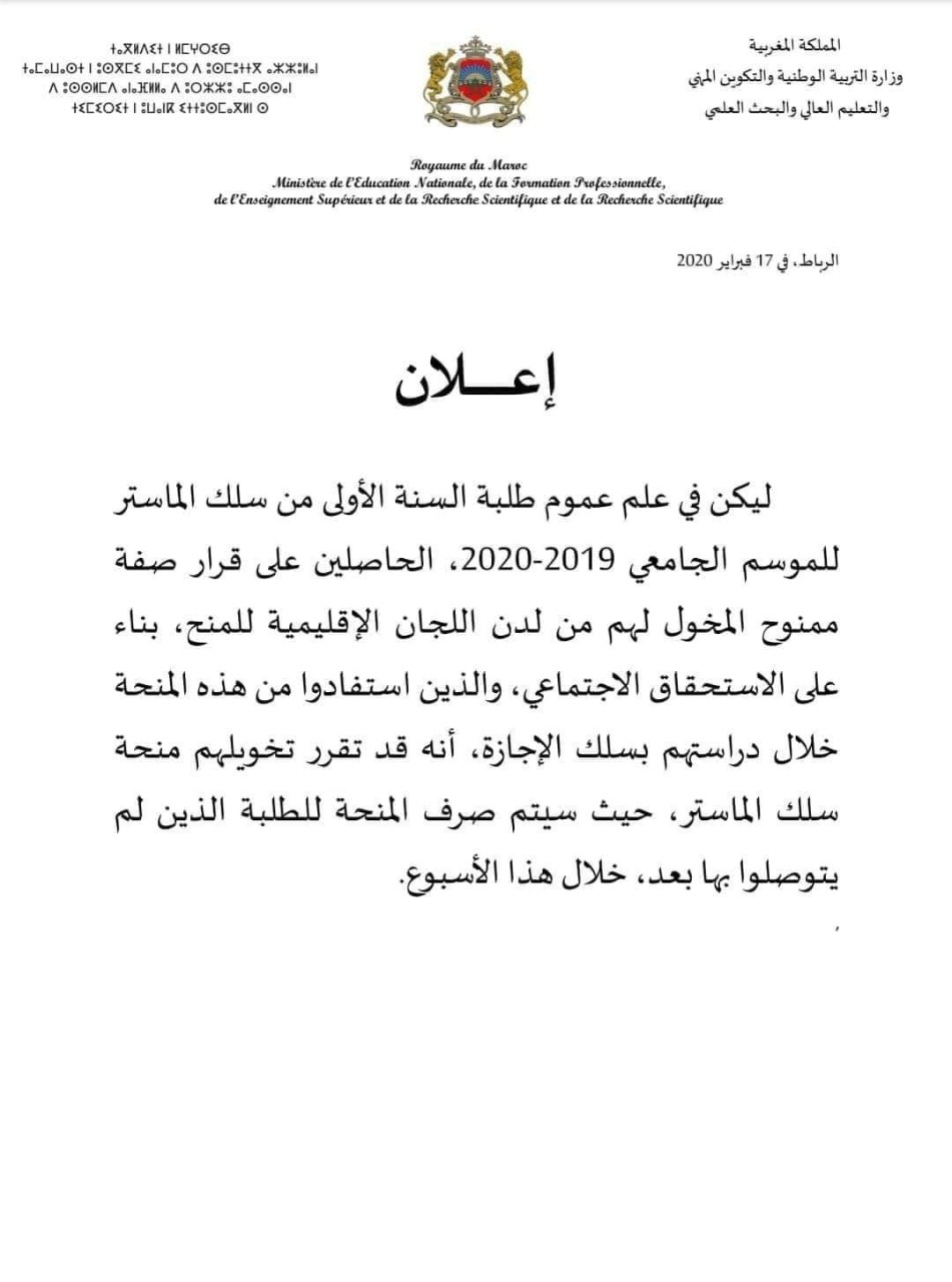 Avis aux étudiants Master: Bourse